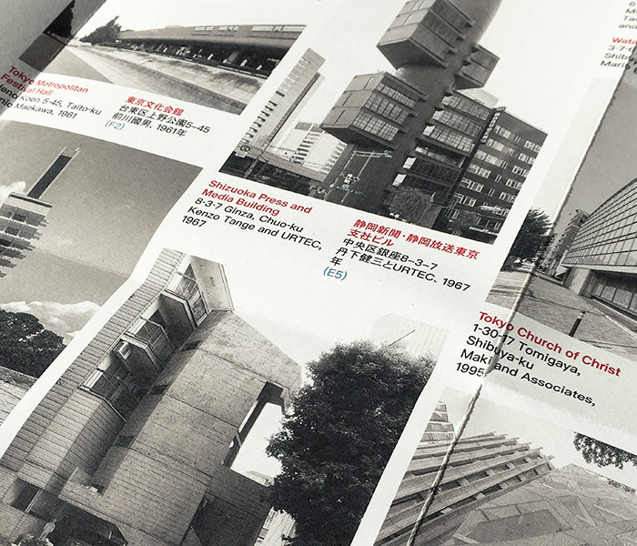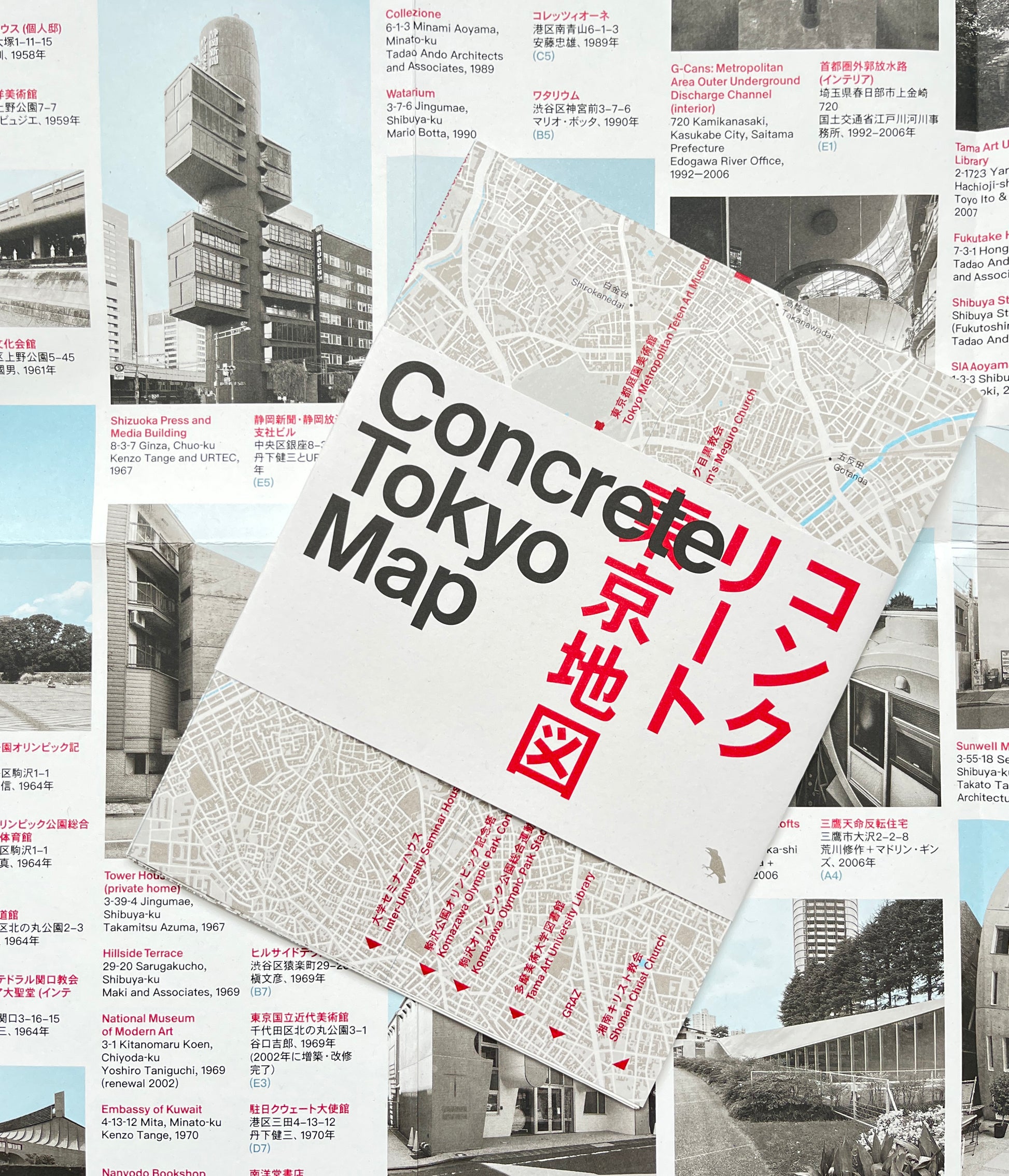 This map highlights the most unique and influential examples of concrete buildings and structures across the city. Architects featured include Tadao Ando, Le Corbusier, Toyo Ito, Tengo Kanze, Kunio Maekawa, Antonin Raymond and many others.