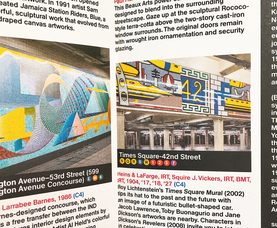 The guide includes a geographical Subway map with featured stations marked, with corresponding photography and details on the reverse along with tips for where to find unique and unusual signage, murals, artworks and more.