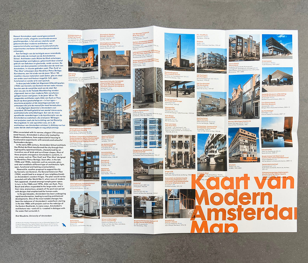 Our Modern Amsterdam Map / Kaart van Modern Amsterdam documents the city’s finest 20th century architecture from expressionist Amsterdam School housing to ambitious urban expansion plans and the more recent docklands redevelopment. The map pinpoints 50 locations with selected original photography, an introduction and descriptions by Rixt Woudstra, assistant professor of architectural history, University of Amsterdam, and original photography by Loes van Duijvendijk.