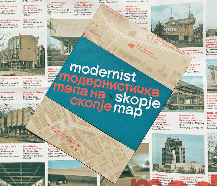 Modernist Skopje Map is edited by Ana Ivanovska Deskova, Vladimir Deskov, Jovan Ivanovski and Ljubica Slavkovic. Photography is by Vase Amanito.